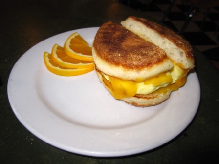dwich which was a scrambled egg, piece of Canadian bacon, spinach and he added avocado. His report . . . two thumbs up . . . mainly because his mouth was too full to tell me how fantastic it was. I had a toasted En