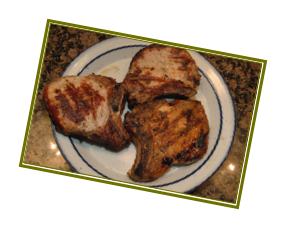 Season the pork chops heavily on one side with “Fred’s Rub”*