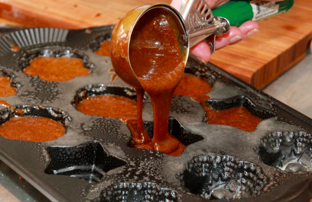 5. Pour batter into bundt pan (or divide evenly among mini pans) and rap pan sharply on counter to eliminate air bubbles.