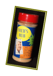 As for the Fred’s Rub . . . my father-in-law was one of the pioneer grillers back in the 50’s and 60’s. He came up with a spice mix of garlic powder, seasoned salt and pepper. To my surprise, it is really quite good on everything from steaks to chops, chicken, veggies and even fish. You just have to vary the amount you use given the heaviness of the food you are preparing. In his honor, my husband Pat has put Fred’s Rub together in shaker bottles and labeled it as “Fred’s Rub”. If you would like to try it, just contact me and for $5.00 plus shipping you too can be a Fred’s Rub addict.