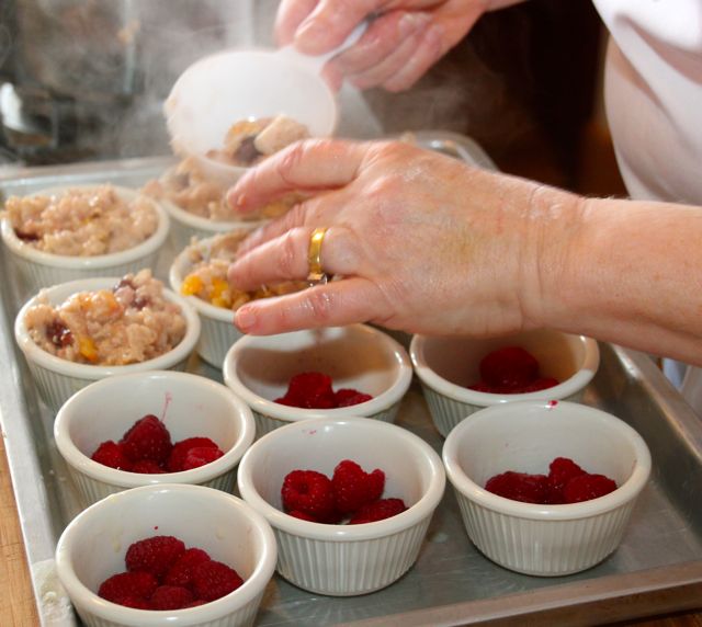 • Grease four 10-oz. broiler-safe ramekins with butter; place on a baking sheet. Divide raspberries among ramekins. Spoon oatmeal over raspberries; sprinkle evenly with sugar. Broil 4-6 in. from the heat for 7-9 minutes or until sugar is caramelized. Serve with remaining ginger cream.