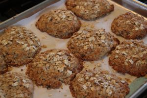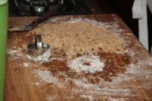 5. Roll as for biscuits, ¾ inches thick, then scatter the 1/3 cup of oatmeal over top. Cut with biscuit cutter and place on parchment lined paper. Bakes at 425 degrees for 12 – 15 minutes