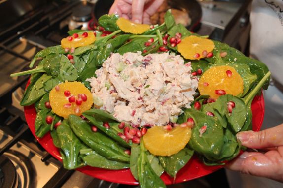 By now you are probably detecting a theme in my favorite salads and that is that they generally contain fruit of some sort, nuts and cheese. I think the reason is that these types of salads will go with just about anything. They are light enough to be refreshing in hot weather, but with the nuts and cheese, they have plenty of protein and so will stay with you. We prepared the Irish Flag Salad at our March cooking class at The Lark Inn and everyone loved it! Another theme with my favorite salads . . . they are simple to make as is this one! Let’s make an Irish Flag Salad!